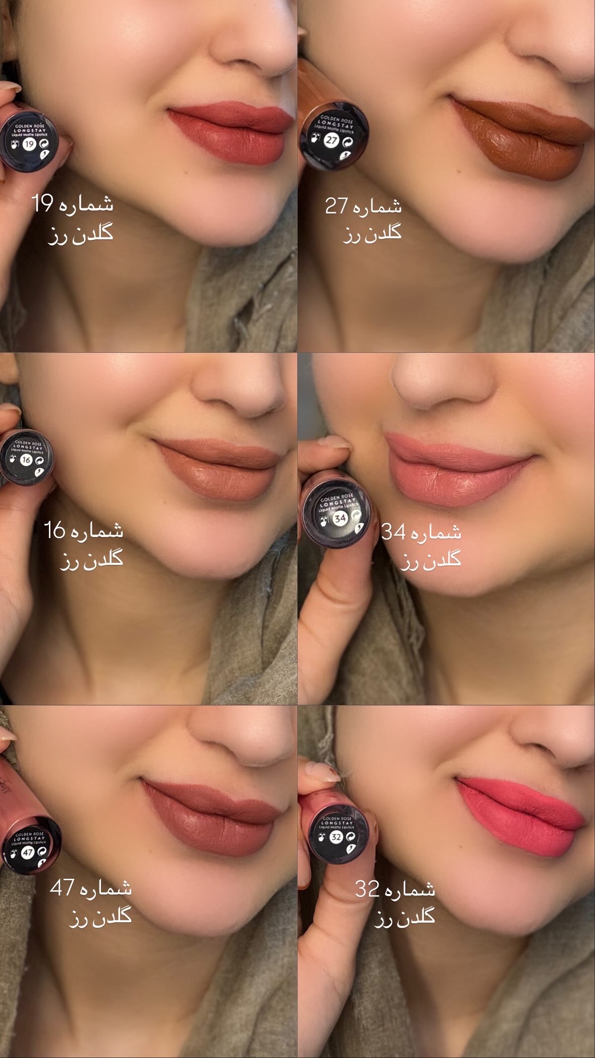 رژلب مایع مات گلدن رز مدل LONG STAY دارای ماندگاری بسیار بالا با پوشش دهی کامل، بدون وزن و بدون احساس خشکی می باشد که تا ساعت ها روی لب ها ماندگاری خواهد داشت. رژلب مایع لانگ استی گلدن رز غنی شده با ویتامین E و روغن آووکادو می باشد و شما را در داشتن لب های نرم، لطیف و بدون احساس چسبندگی و کشیدگی در طول روز یاری می کند